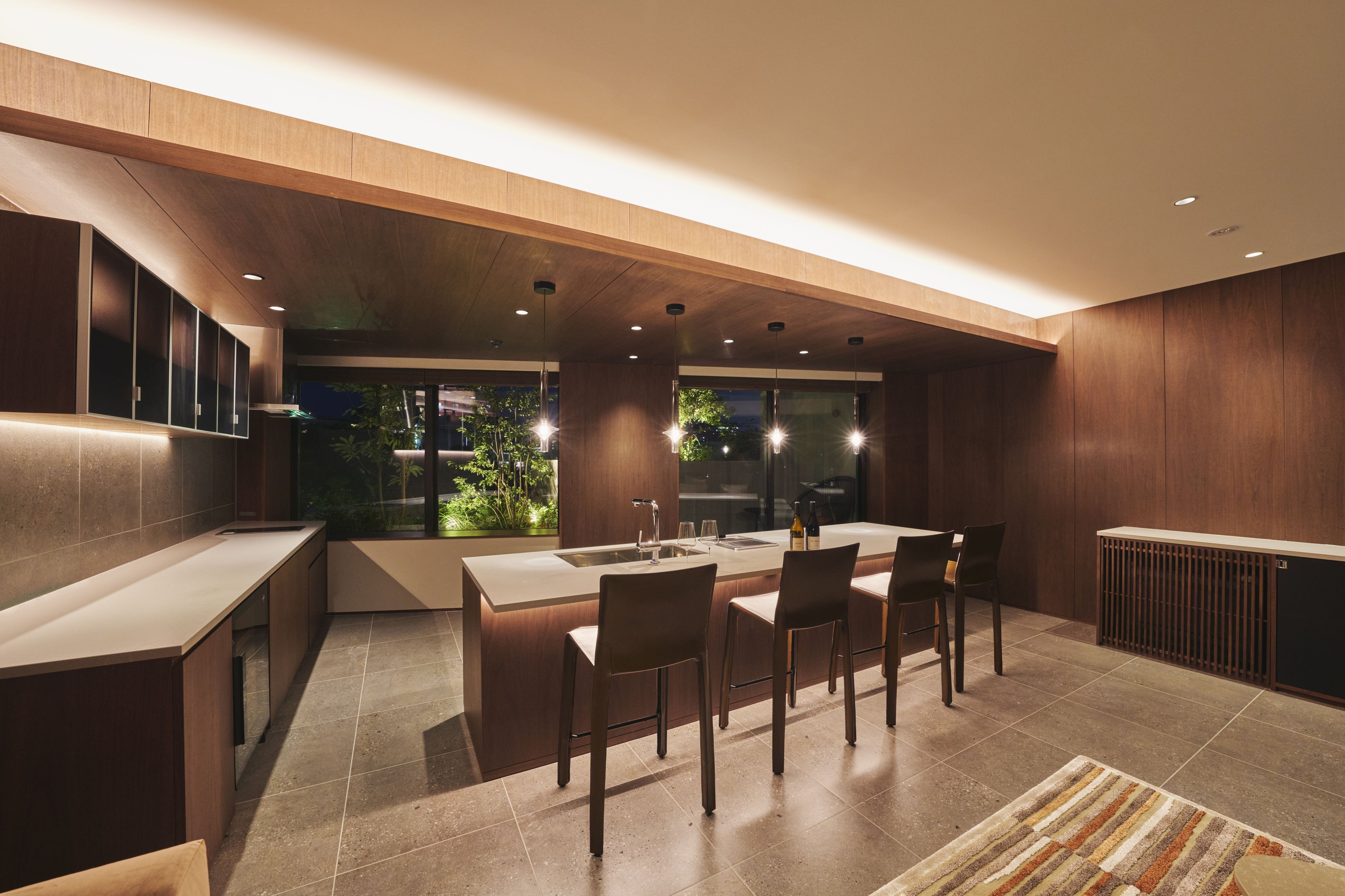 思い立ったその瞬間にONとOFFの気分を転換する家。プライベートサウナと書斎がついており、家族だけではなく仕事仲間と過ごすにも最適な空間です。