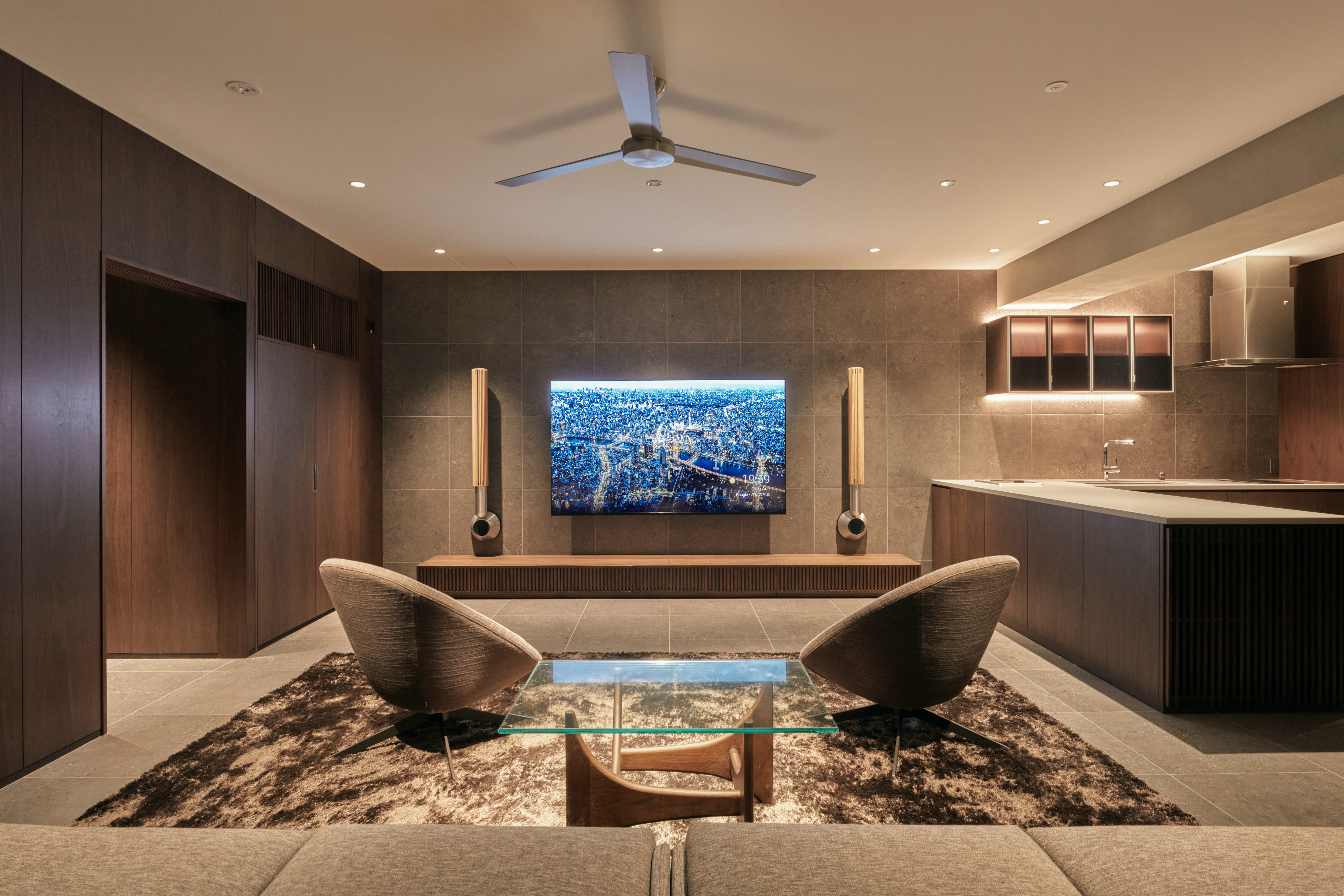 至高のサウンドシステムで非日常に篭る。大人が篭り、プライベートな時間に没入できるコンパクトな設計の中に十分な機能性を備えたミニマルな空間。趣味の合う大切な誰かとじっくり過ごすのに最適な場所です。