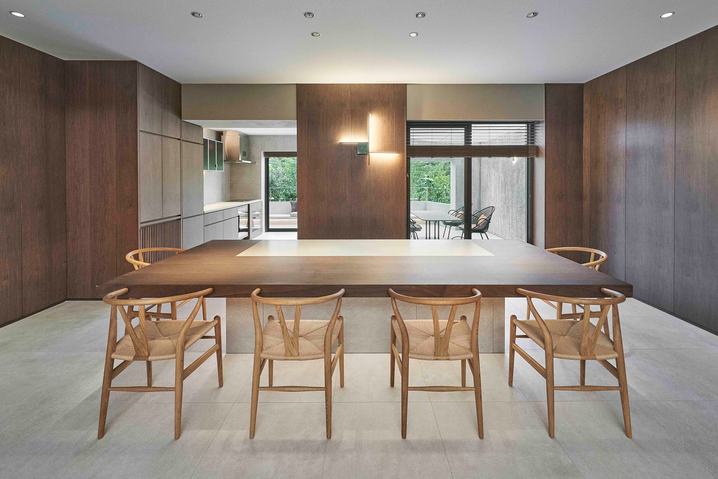 気心の知れた仲間や友人と楽しむための美食の家。調理のライブ感を楽しむシェフズテーブルと、約30㎡のテラスにあるアウトドアダイニング、2つの食卓をご用意しています。