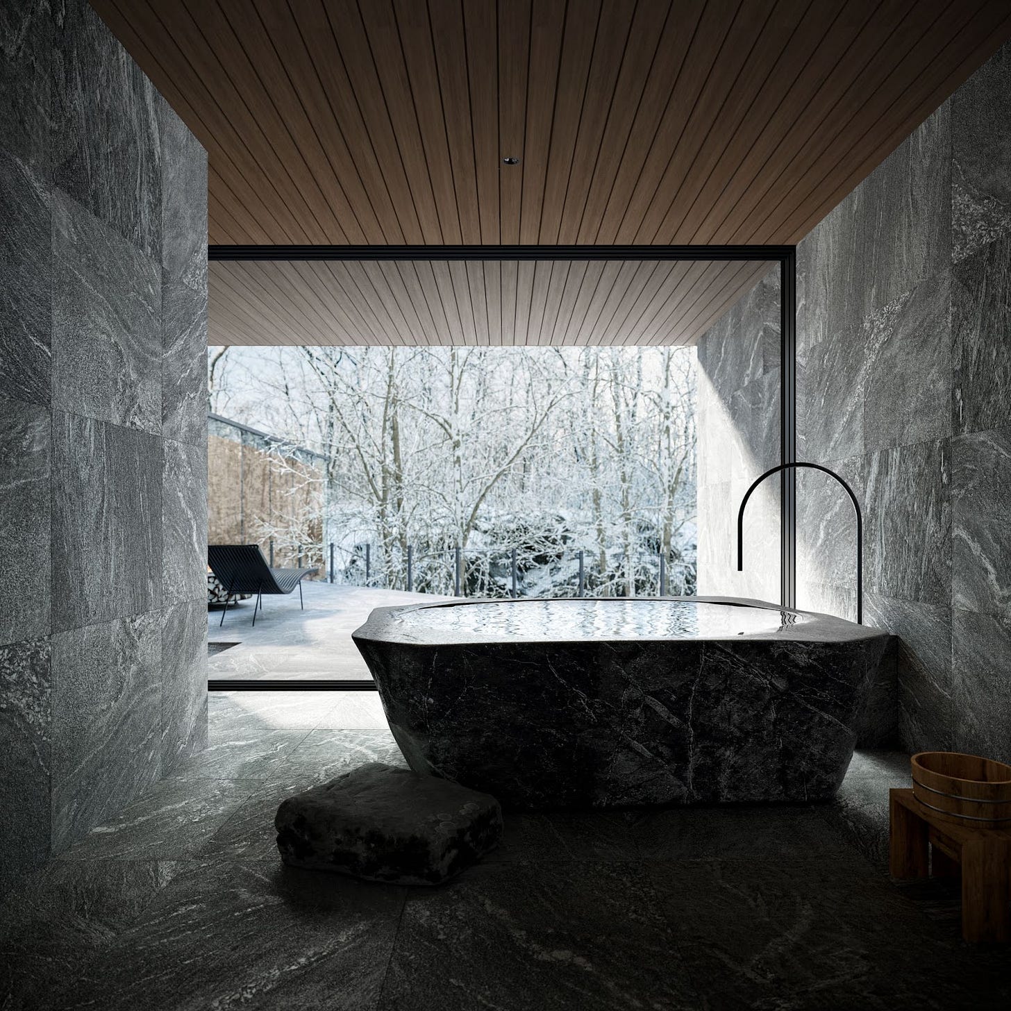 象徴的な囲炉裏スペース、最大8名がゆったりと過ごせるリビング・ダイニング、ゲスト滞在も可能な2つのベッドルームとプレイルームなどを完備した3LDK。さらに、景色を眺めながらリラックスできるサウナ、1枚岩を削り出した岩風呂が特徴の天然温泉など、充実のファシリティが揃います。都会の喧騒とかけ離れた雄大な環境でゆったりと過ごせます。