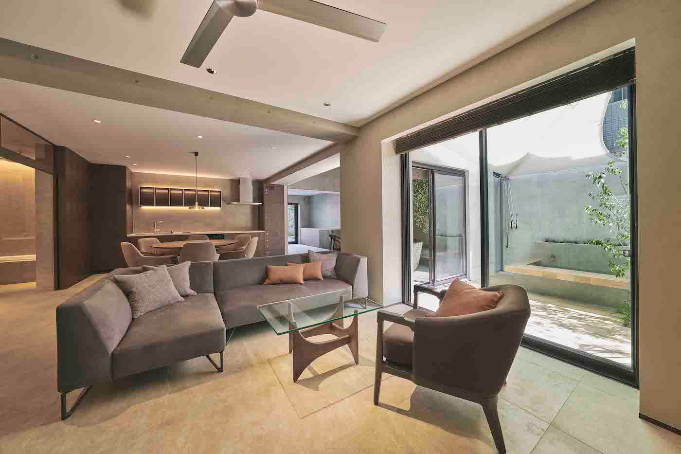 11月に開業を迎える「NOT A HOTEL FUKUOKA」は、絶景のリゾート地にある別荘というこれまでの「NOT A HOTEL」シリーズとは異なる、初の都市型コンドミニアム。福岡空港から車で15分、天神から一駅という好立地にありながら、全室100㎡以上でテラス付きというゆとりの空間を全8タイプ揃えている。オレンジ・アンド・パートナーズを率いる小山薫堂氏が監修し、“人生の余白(=blank)を楽しむ”をコンセプトに、都会の街中で暮らすように過ごせる場所だ。