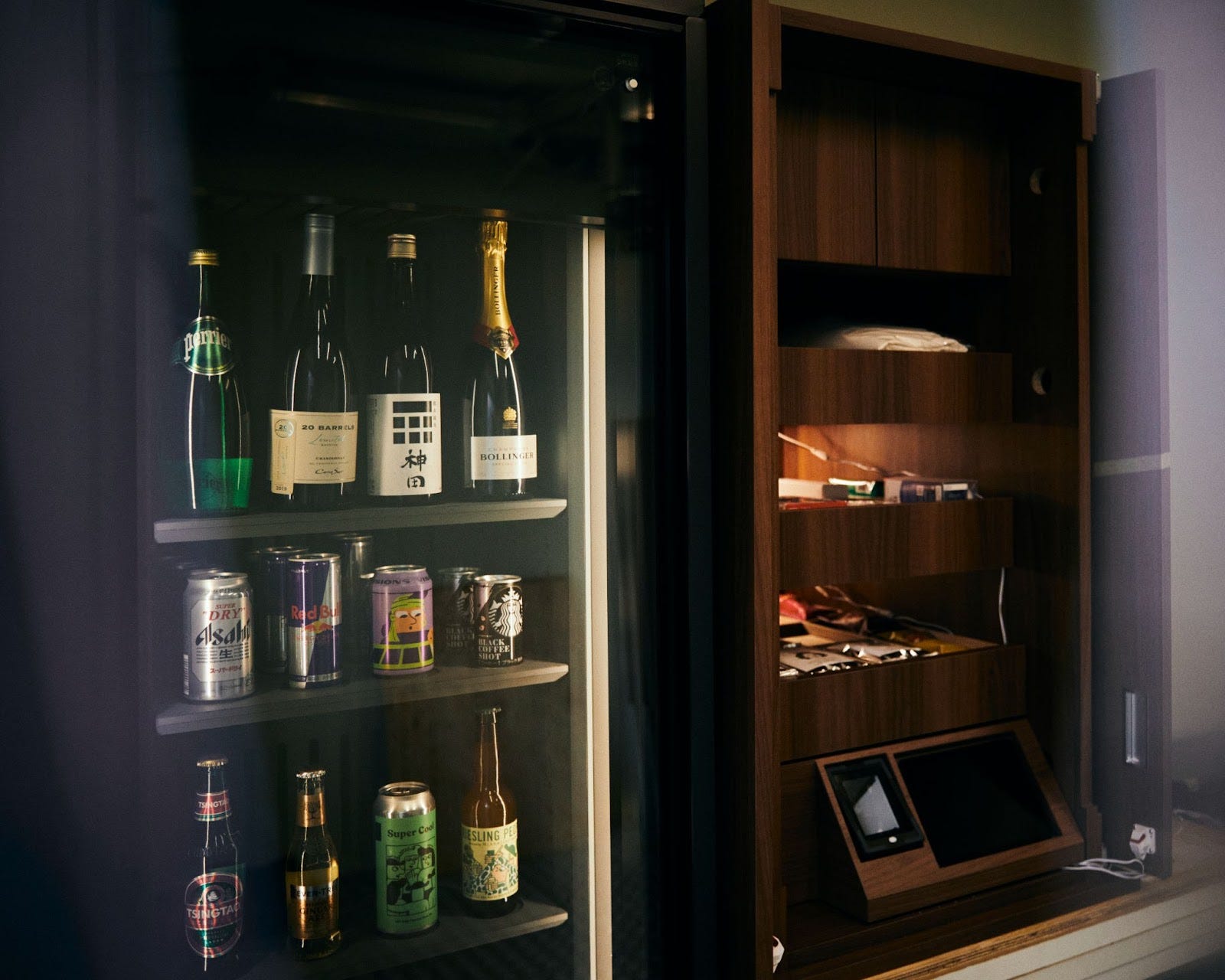 暮らすように自由に滞在したい時には、部屋のキッチンでご自身で料理をしていただくセルフサービスや、軽食・夜食に加えて、ワインなどのドリンクを楽しめる冷蔵庫型コンビニの設計を進めています。