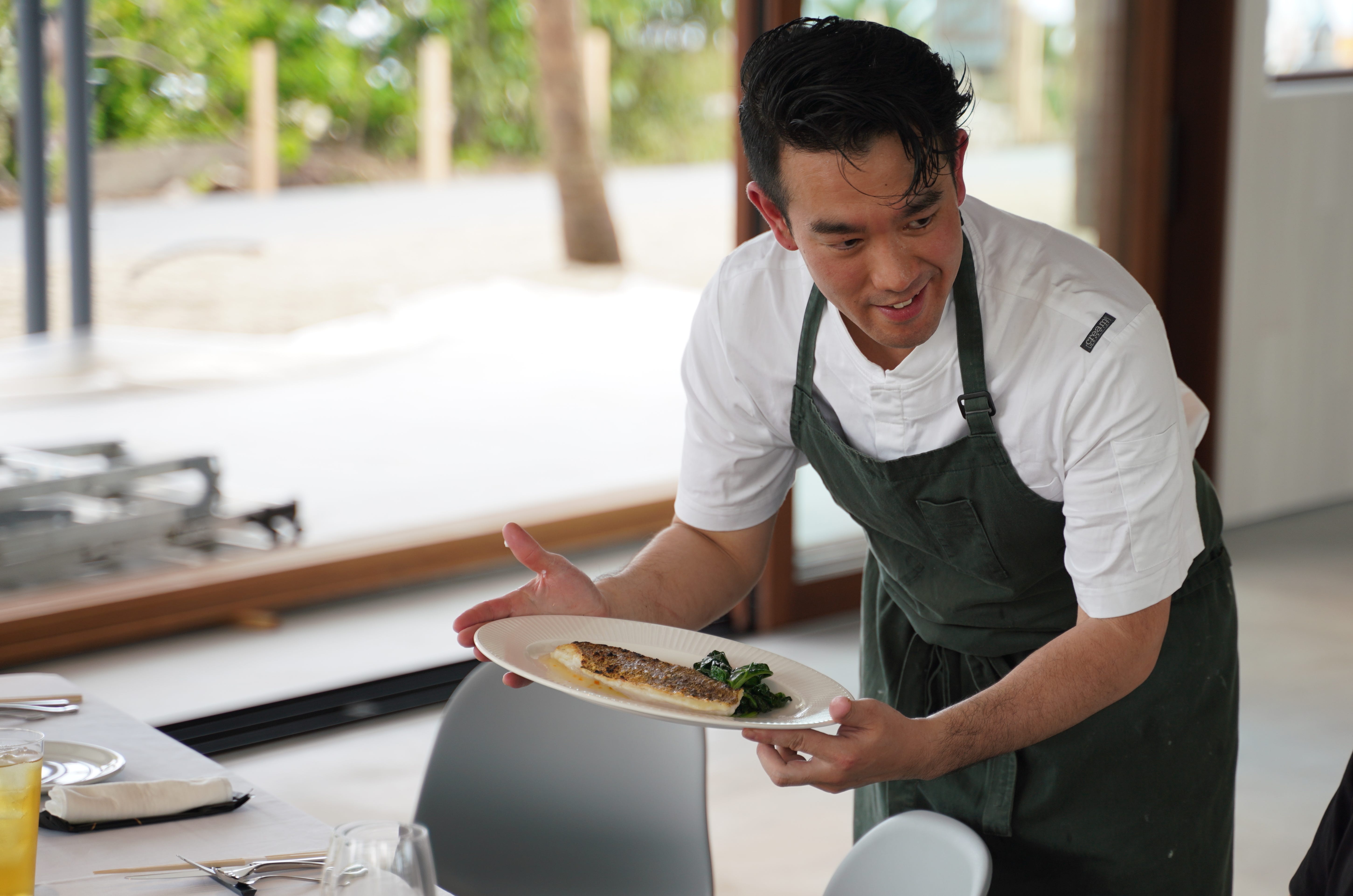 この度、青島という神聖なる地でレストラン「LDK」の料理を担当することになりました。みんなにとってのリビングダイニングでありたいという意味を込めた名前です。宮崎県という素晴らしい土地の食材、フロントオブビーチという美しいロケーションで料理をご提供できることを嬉しく思います。一つのキュイジーヌや調理法に囚われず、さまざまな料理に挑戦していこうと思っています。