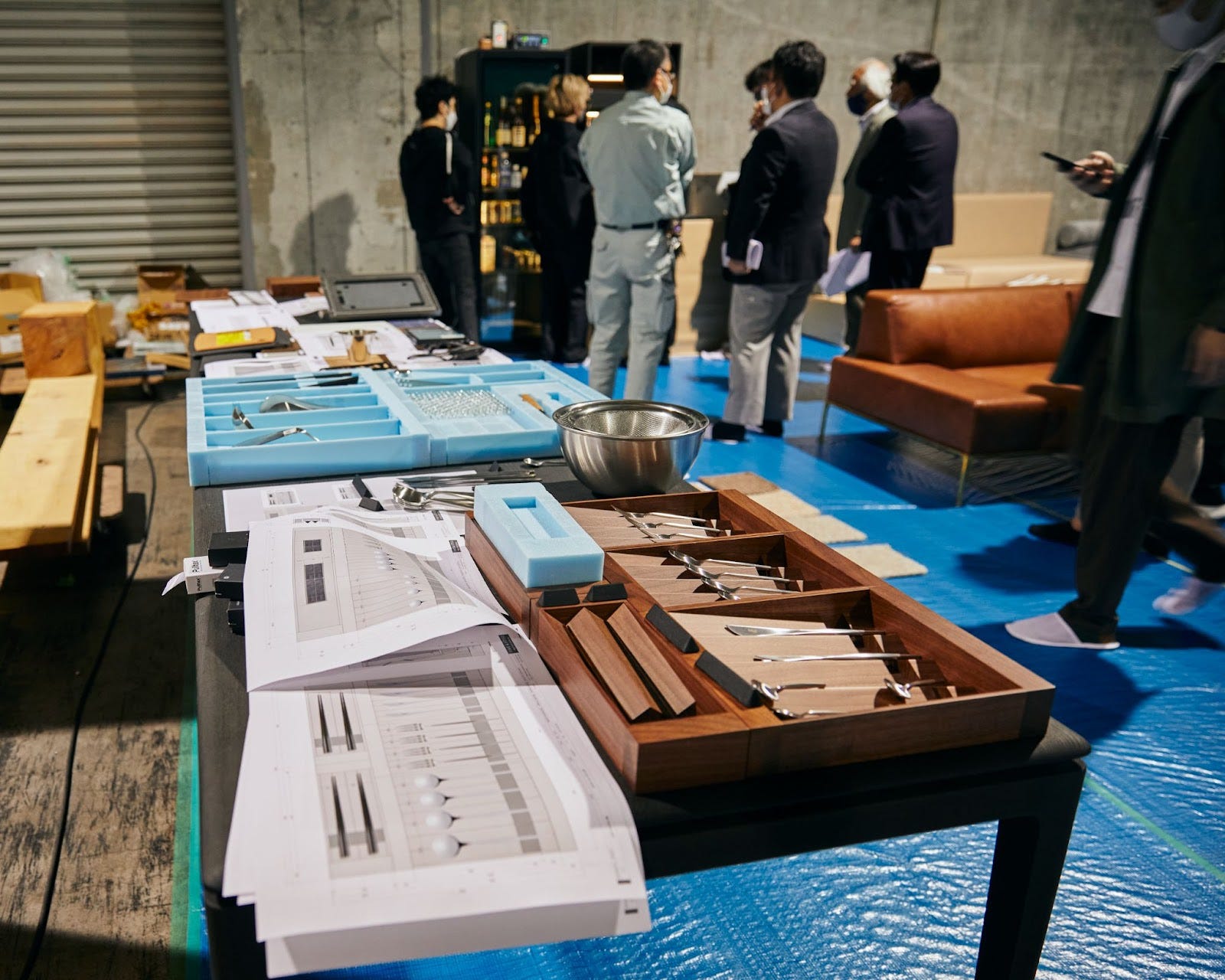 特にキッチンツールの収納にはこだわりが。通常のホテルと違い、部屋でご自身で料理をすることやシェフがおもてなしをすることも想定されるNOT A HOTEL。生活感を取り除きながらも、誰もが使い勝手の良い体験をできるよう、キッチンツール専用のオリジナルの収納棚を制作しています。