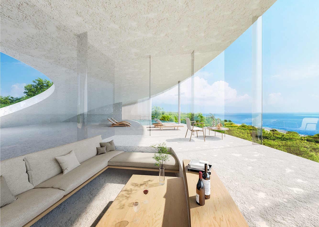 内外の境界が曖昧な、おおらかに地球と繋がる建築には、海を一望するリビングダイニングの他、最大10人が宿泊可能な4つの独立したベッドルームを完備。仲間と集まり静かなビーチを満喫し、庭でBBQを楽しんでリビングで晩酌をして、それぞれの部屋へ。