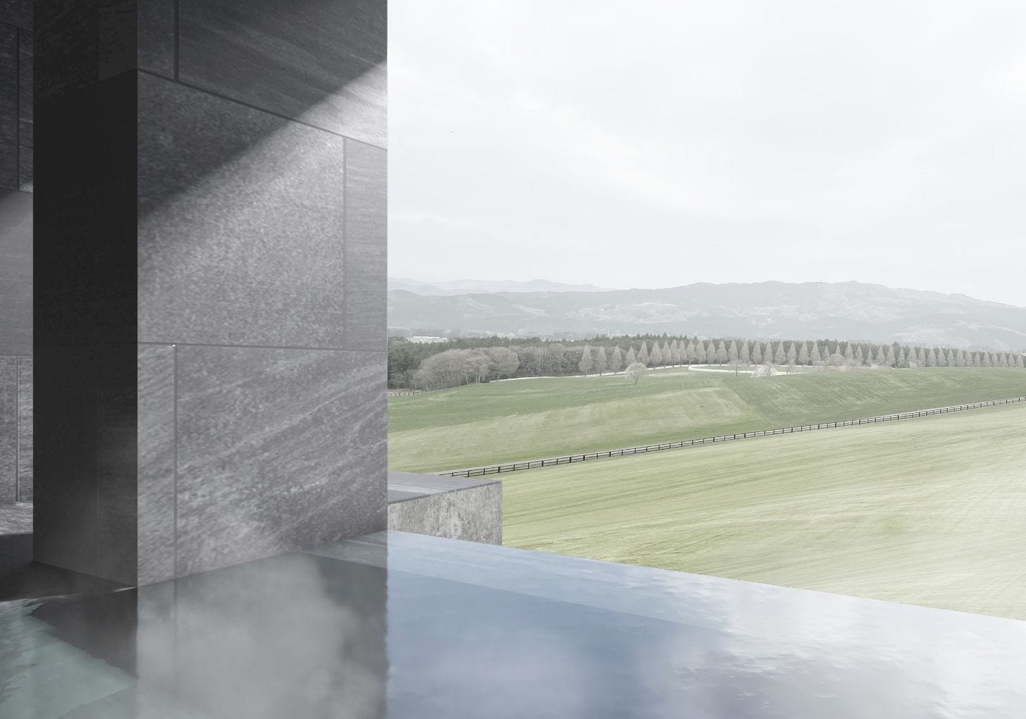 青島が海を目の前にしたビーチハウスだとすると、ここは20頭の馬と暮らすファームハウス。16万坪、東京ドーム11個分もの広大な敷地にできるNOT A HOTELはたったの2棟しかありません。今後少しずつ増やしていく予定ですが、先ずは敷地内で最も景色の良い場所にフラッグシップが完成します。建築デザインは、谷尻誠氏と吉田愛氏率いるSUPPOSE DESIGN OFFICE。牧場の斜面に突き出るプールが特徴的な「浮遊の家」と、母屋とハナレそれぞれを自由に行き来できる「読了の家」で構成されています。