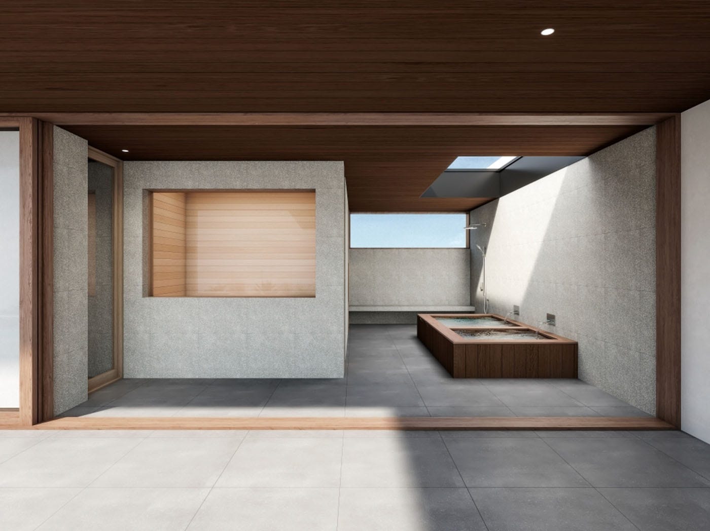 水回りや通路に至るまで、一つひとつひとつの面積を通常より広く設けた設計もその開放感を助長する。30平米を有する広い水回りについて大堀は、「水回りが狭いと、急に住宅感が出てしまう。ここでは必要以上に広く設けた水回りによって、日常と非日常の間のバランスをうまくとっているんです」と語る。