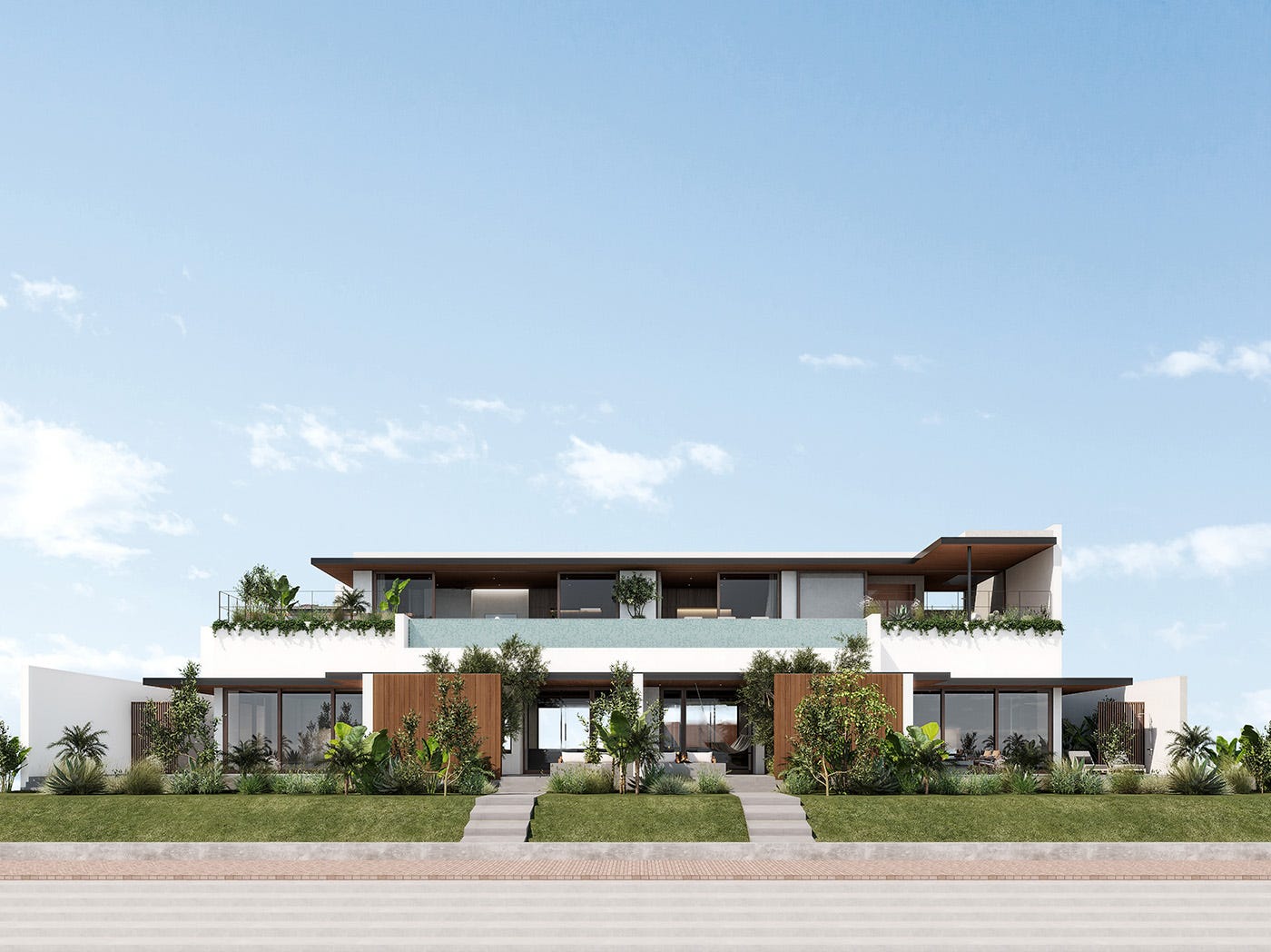 豊かな時間をデザインするのは、その空間で人がどんなふうに過ごすかを想像することから始まる。「自分だったらここで何したいかなって、やっぱり思うじゃないですか」。NOT A HOTEL AOSHIMAではそんなイメージを膨らませながら、大きなテラスとプールで家族や友人をもてなすことのできる「青島の家」、いい波が来たらすぐに海まで飛んでいける「波待ちの家」、海を一望できるプライベートな庭を持つ「海と庭の家」、喧騒から離れて広がる海の景色夕暮れを楽しめる「水平線の家」の4つの家のコンセプトが出来上がった。もともとの計画ではすべて平屋だった建物に2階の部屋をつくったのは、「2階からの眺めが見えたほうが『豊か』ですよ」という大堀の提案があったからだ。