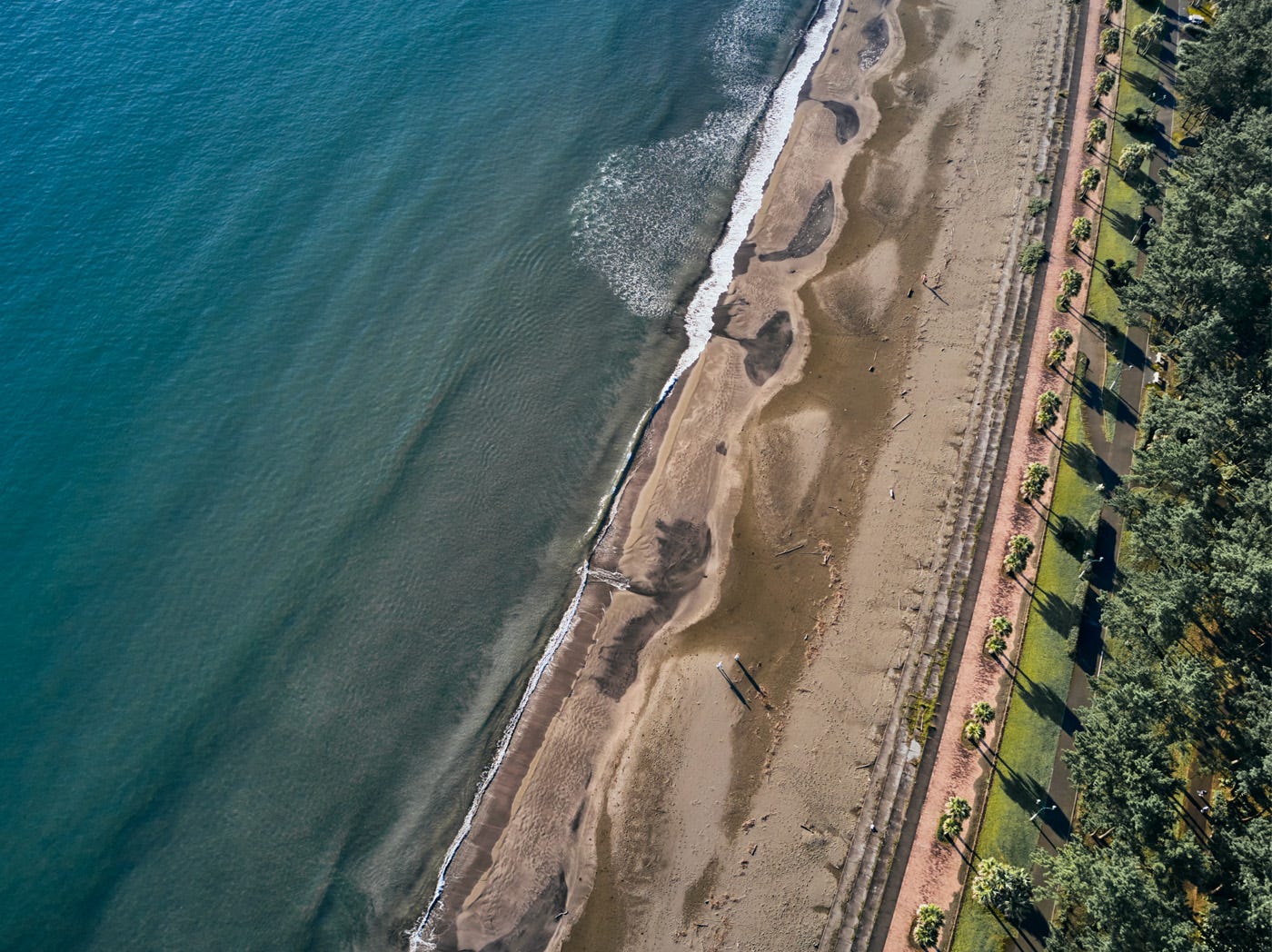 海辺のホテルは多くても、海側からそのまま部屋に入れるホテルは珍しい。「海沿いのリビングはありきたり。あえて一番海に近い場所にテラスと出入り口を設け、さまざまな過ごし方の選択肢を設けました」と、大堀は波乗りのために最適化された間取りの制作プロセスを振り返る。